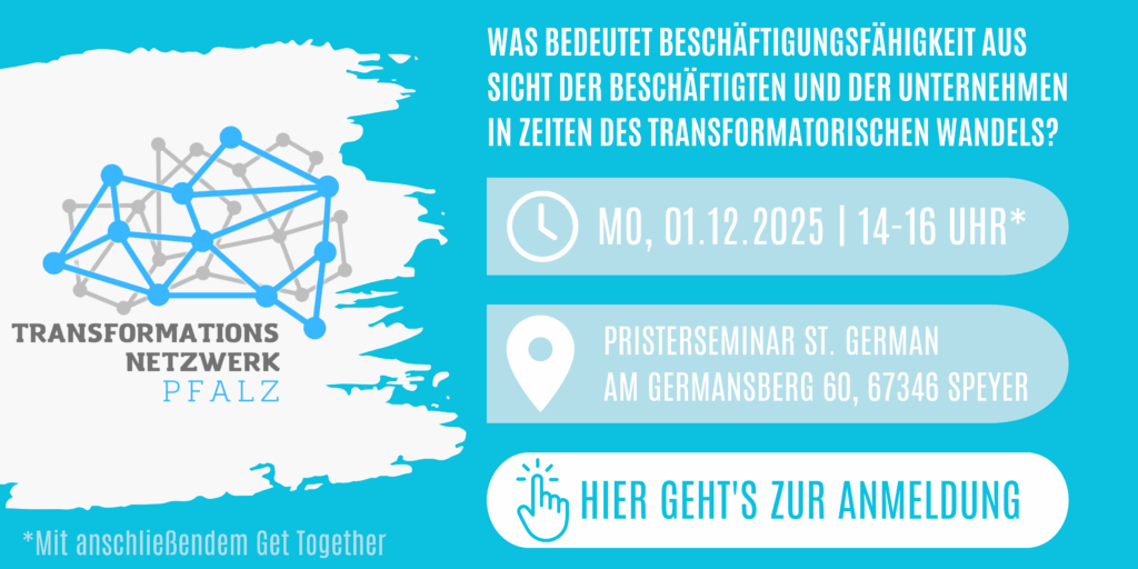 Das Transformationsnetzwerk Pfalz bringt Beschäftigte und Unternehmensleitungen mit Vertreter*innen aus Forschung, Politik, Verwaltung und der Tarifpartner zusammen, um gemeinsam zu erörtern, wie die Pfalz den aktuellen Transformationsherausforderungen begegnen kann.